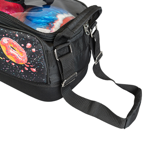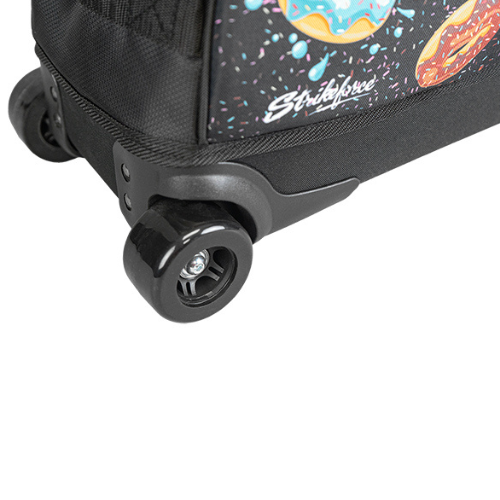 The KR Strikeforce Dye-Sub Slim Triple Tote – Donuts features fun, colorful donut graphics and a clear top for easy ball visibility. It’s built with durable 600D/840D fabric and a molded EVA base for strength and stability. Wide, color-matched skateboard-style wheels ensure smooth rolling, while padded handles offer comfortable carrying. Weighing under 5 lbs, it’s perfect for air travel. A stylish, lightweight choice for bowlers on the go!